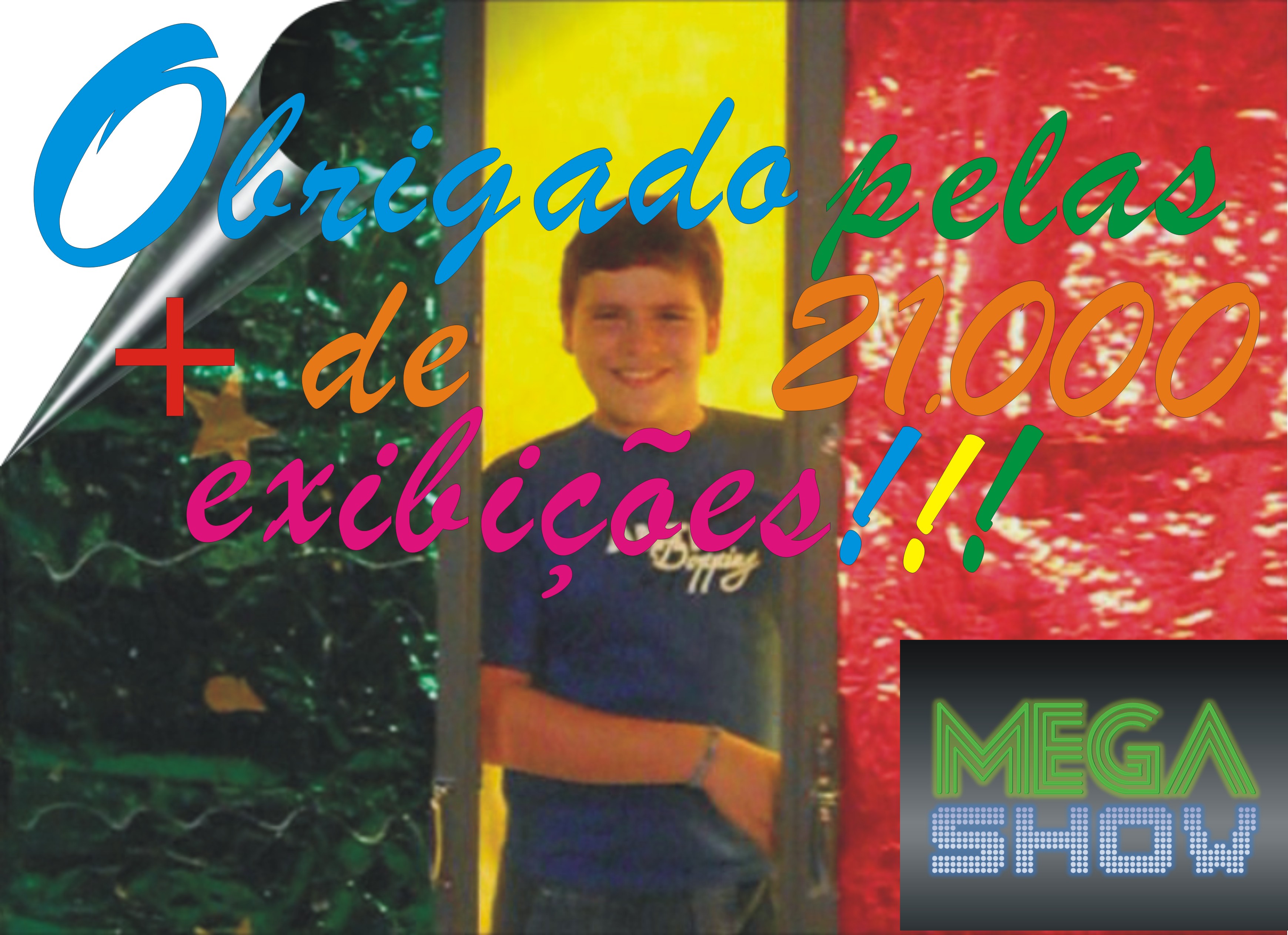 Estou muito feliz por o programa Mega Show ter ultrapassado mais de 21.000 exibições!!!! Isso é a prova de que eu estava certo quando criei o Mega Show!!! Valeu pessoal pelo enorme carinho e pela sua audiência!!!!! Beijos!