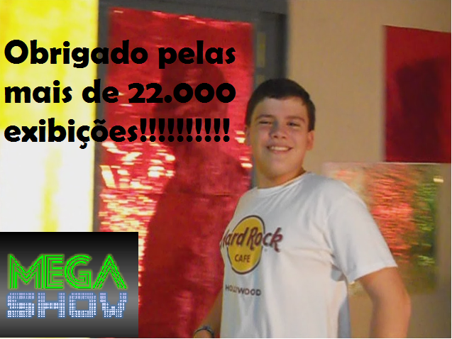 Galera estou muito feliz por o Programa Mega Show ultrapassar mais de 22.000 exibições!!! Valeu pelo carinho galera!!! E o Mega Show é feito pra vocês e por vocês!!! Uhul!