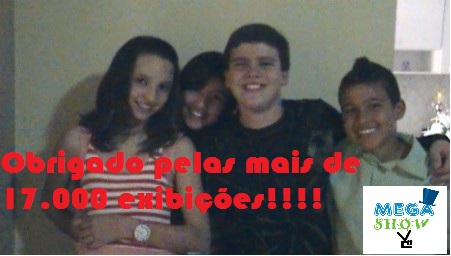 Oi galera! Estou aqui para agradecer o enorme carinho de todos e sua audiência! Até agora conseguimos mais de 17.000 exibições no YouTube!!!!!!!!! Agradeço o enorme carinho e sua participação no nosso cantinho, no nosso Mega Show!!!! Abraços!!!